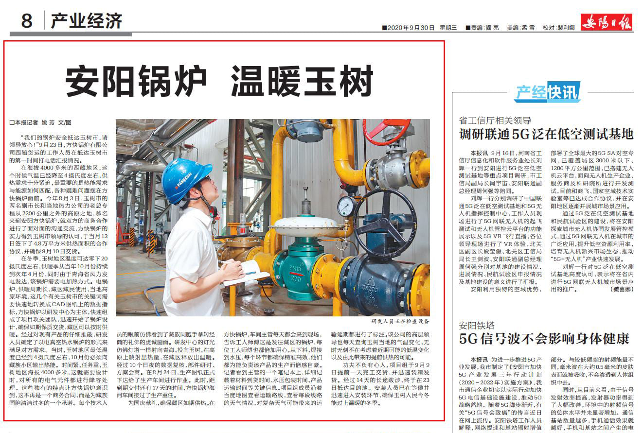 近日,安陽日報就方快鍋爐進駐藏區(qū)—青海玉樹供暖項目做了專題報道:《安陽鍋爐,溫暖玉樹》。