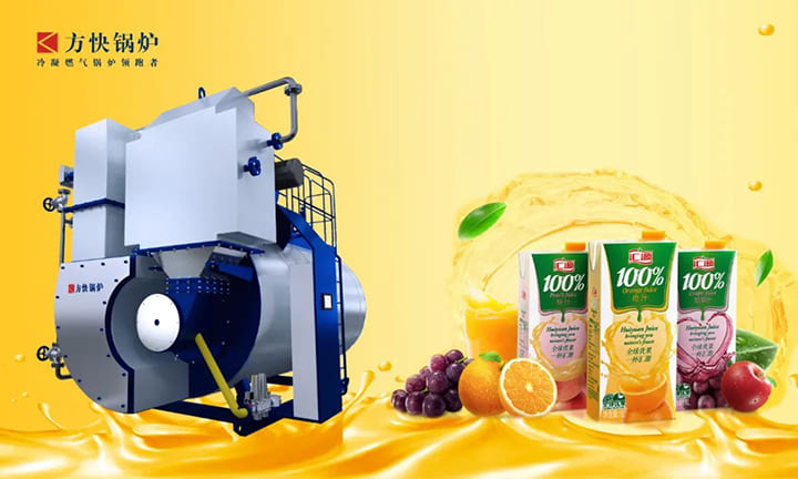 鍋爐是飲料生產(chǎn)過(guò)程中一項(xiàng)必不可少的設(shè)備,為蒸發(fā)濃縮、殺菌、無(wú)菌灌裝等多個(gè)工藝環(huán)節(jié)提供蒸汽,且蒸汽的穩(wěn)定性和品質(zhì)對(duì)濃縮果汁的純度、產(chǎn)量起著十分重要的作用。隨著天氣逐漸炎熱,各類(lèi)飲品也已進(jìn)入了銷(xiāo)售旺季。為滿(mǎn)足市場(chǎng)需求,產(chǎn)線(xiàn)蒸汽供應(yīng)不足的問(wèn)題顯現(xiàn)。為響應(yīng)國(guó)家節(jié)能減排、環(huán)境保護(hù)工作,經(jīng)過(guò)多家鍋爐廠(chǎng)研究對(duì)比,匯源集團(tuán)對(duì)方快的低氮冷凝鍋爐充滿(mǎn)興趣。